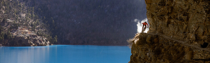 Besneeuwde bergen, afgelegen kloosters, majestueuze Boeddhabeelden – er zijn veel dingen die we met Nepal associëren. Mountainbiken hoorde daar tot nu toe niet bij. Maar toen nam Kilian Bron het heft in eigen handen. Met zijn neus voor bijzondere bestemmingen bewijst het uitzonderlijke MTB-talent ook in Mandala weer zijn creativiteit bij het zoeken naar interessante plekken. Of het nu gaat om een door apen bewoond tempelcomplex in de hoofdstad Kathmandu of blootgestelde voetpaden op de steile hellingen van de afgelegen Dolpo-vallei: Kilian vindt altijd een weg voor zijn fiets en bewijst tegen de indrukwekkende achtergrond van Nepal dat gebedsmolens niet het enige zijn dat hier kan draaien.